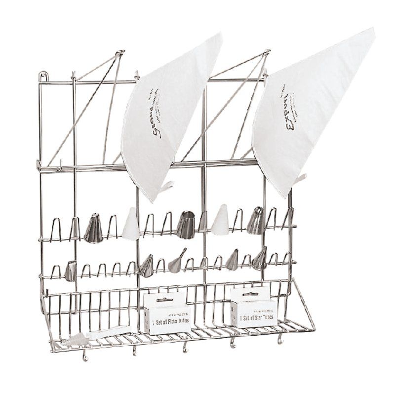 L'azienda di Cittanova dispone inoltre dell’espositore per le sacche à poche e le bocchette, molto utile anche per asciugare gli utensili una volta lavati.