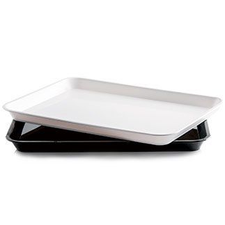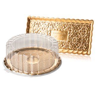 Questo vassoio in plastica di ampie dimensioni, dotato di bordi rialzati anti-goccia, è l'ideale per esporre torte e pasticcini, ma rappresenta anche un valido supporto per contenere ricette finger food.